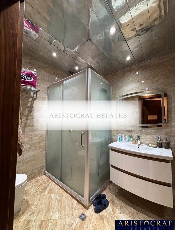Sanitar qovşaq və mətbəxdə isti döşəmə mövcuddur. Mənzildə əlavə qarderob otağı nəzərdə tutulub və əşyalı satılır.